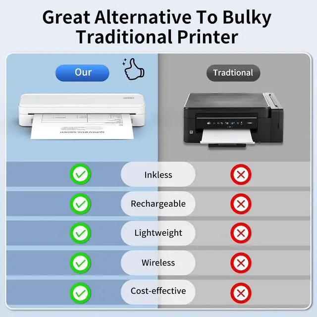 Cost-Effective, Ink-Free Printing: Save on ink, toner, and ribbons with this portable printer for iphone, perfect for everyday needs like recipes, forms, assignments, and travel documents. Each thermal paper costs just $0.07, delivering significant yearly savingsideal for home, office, and school use. (Note: Supports thermal paper only.)