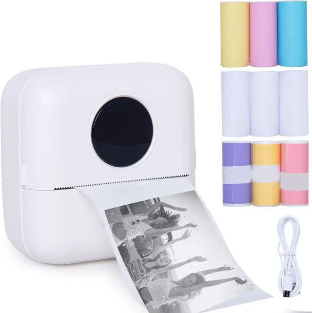 Thermal Printer Paper The mini portable printer comes with 9 rolls of various inkless printer paper, including 3 rolls of sticker paper, 3 rolls of white plain paper and 3 rolls of colorful plain paper, mini picture printer making it perfect for various daily printing needs