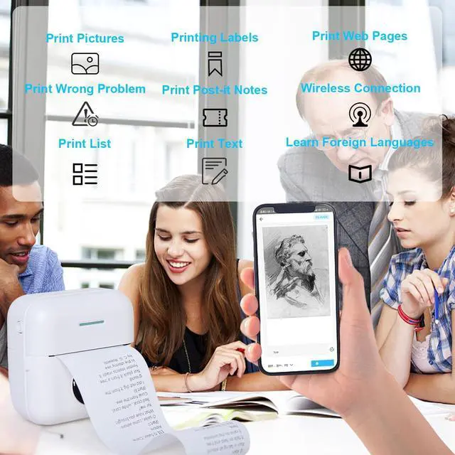 Bluetooth PrinterConnects wirelessly to your cell phone via Bluetooth. The app offers a wide range of printing options and materials, Portable sticker printer including photo/label/post-it/web/document printing, As well as festival/animal/plant materials, and more