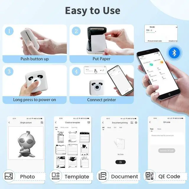 Bluetooth Portable Thermal Printer - TP6S Mini Sticker Printer for iPhone & Android, Wireless Pocket Picture Printer for School Notes, Journal, DIY, Kids Gifts