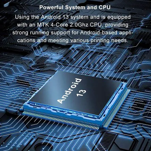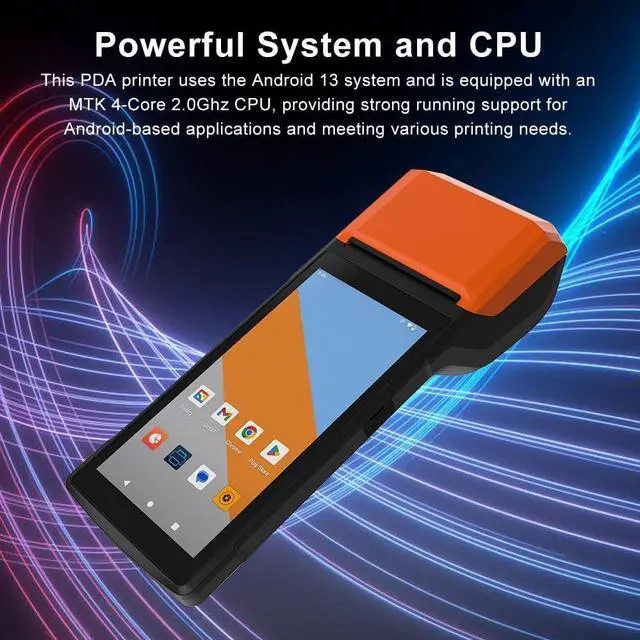 Powerful System and CPU: This PDA printer uses the Android 13 system and is equipped with an MTK 4Core 2.0Ghz CPU, providing running support for Androidbased applications and various printing needs.