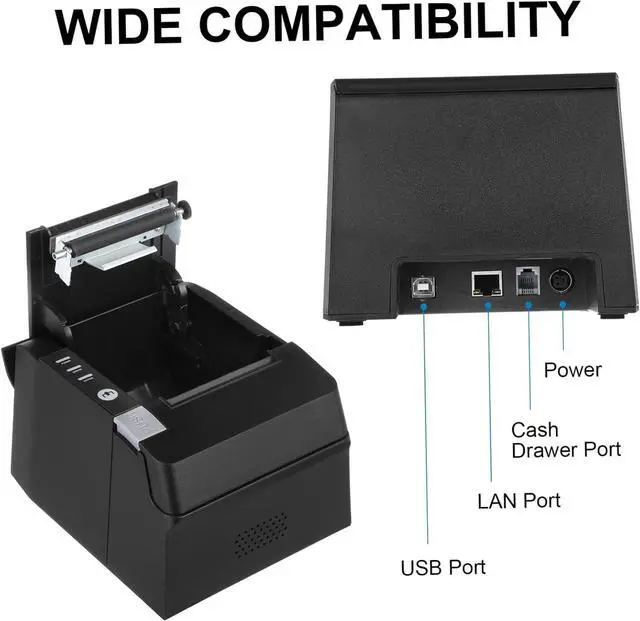 Versatile use: the receipt printer supports a wide range of receipt paper types and sizes, making it suitable for use in various industries and applications,receipt printer for small business,receipt thermal printer