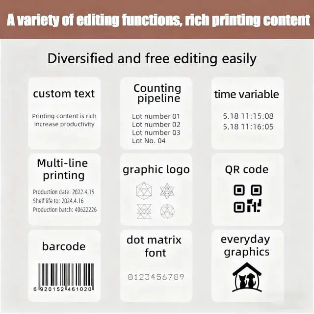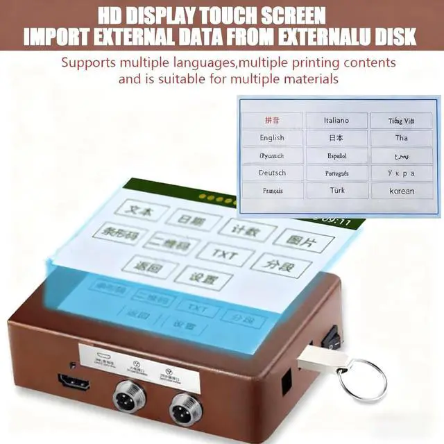 [High Definition Printing]The motherboard's stabilization performance further optimizes the printing effect, and can maintain a clarity of more than 300DPI during each printing process. Equipped with photoelectric interface, power interface, USB interface, It can be used with conveyor tables, paging machines, labeling machines and other different assembly lines for online batch coding to improve efficiency.synchronizer interface, etc. for easy connection. Support U disk import.