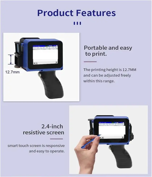 1. The two forms of the machine can be converted to each other at will, with a detachable handle, compact and portable, easy to print, and a printing height of 12.7MM