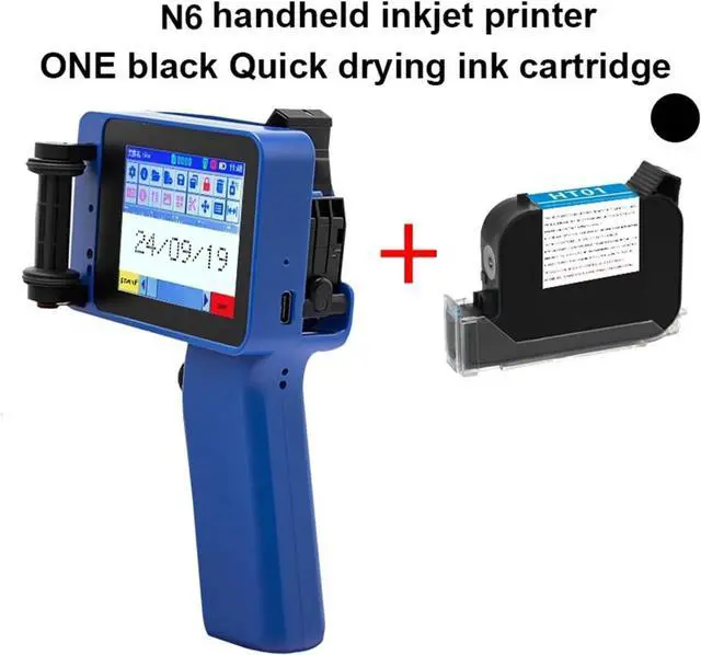 Label Handheld Inkjet Printer Date Qr Code Batch Number Logo for Packaging Printing Portable Coding Machine Multi-Format Printing,Blue-Printer- 1 Black Ink