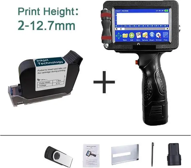 12.7/25.4Mm Portable Printer Qr Bar Batch Code Date Number Logo Expiry Date 24 Languages Handheld Inkjet Printer Multi-Format Printing,Black-with 1 ink-12.7mm