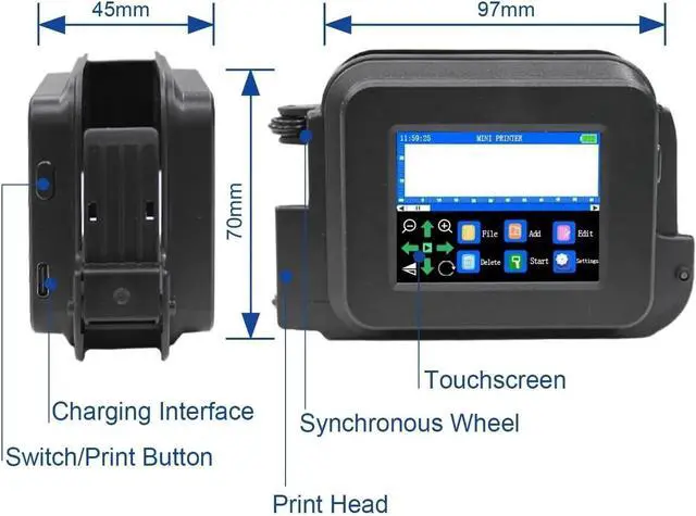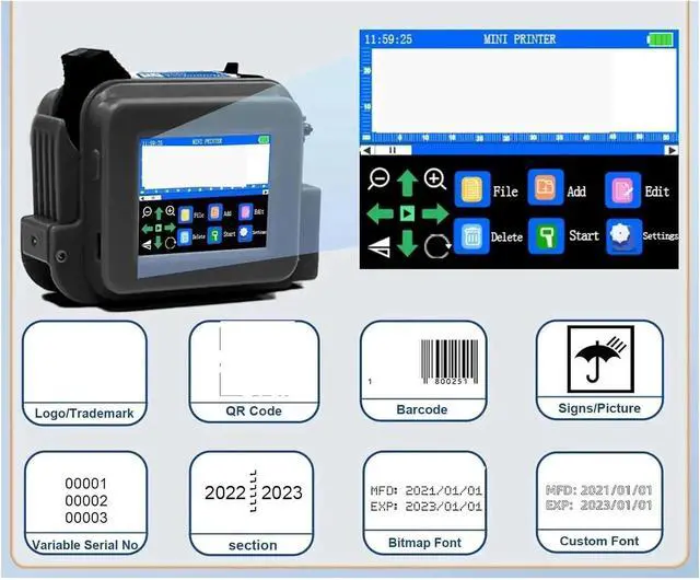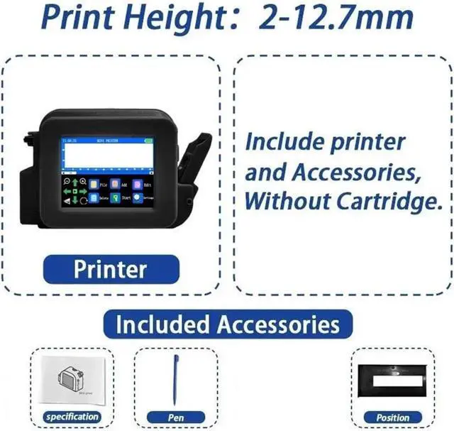 Wide Coding Applications 12.7mm Portable Mini Printer Handheld Inkjet Printer Text QR Barcode Image Batch Number Logo Image Coding Machine Lightweight and Convenient