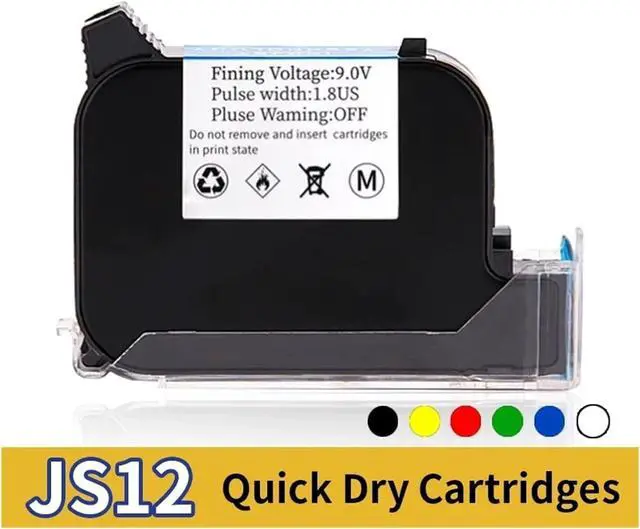 1pcs JS12 JS12M Compatible Ink Cartridge 600DPI 12.7mm Handheld Inkjet Printer Fast Dry Eco Solvent Ink Cartridge Lightweight and Convenient