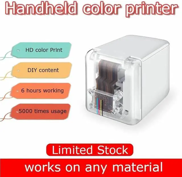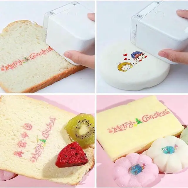 HANDHELD FOOD PRINTERMini portable size of 2.8"x2.0"x2.6", this handheld mobile color printer allows print anything in anywhere, easy setting, the detachable ink cartridge makes it easy to replace, clear and quality printing, no distortion, the best color printer.