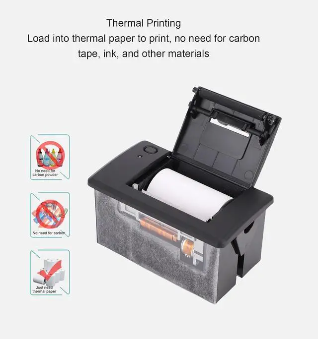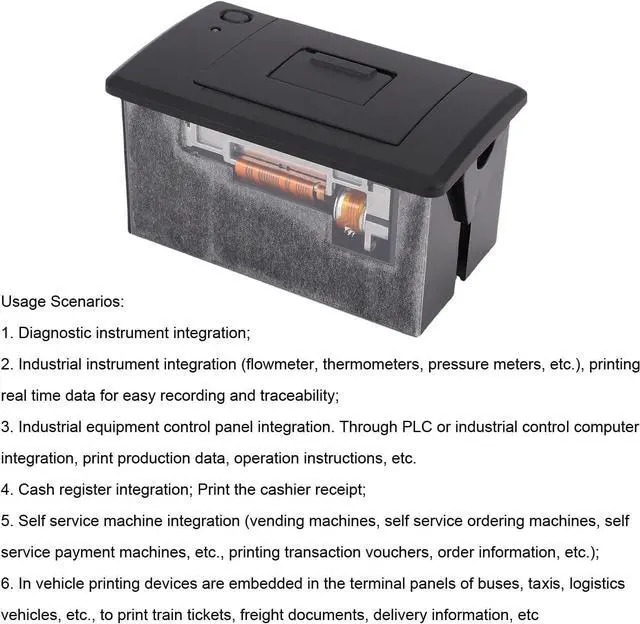 Wide Use: This printer module is widely applied in industrial control panels, industrial instruments, cash registers, self service machines, car printing devices, laboratory and scientific research equipment and other devices that require thermal receipt paper printing
