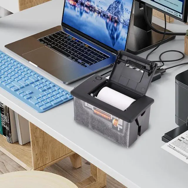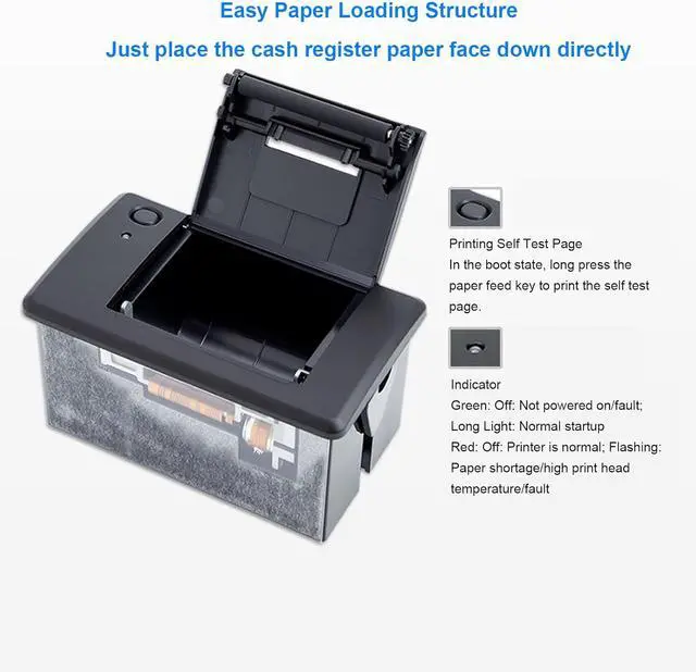 User Friendly: Open the paper bin lid on the front panel to change the paper, simple and convenient to operate, and the structure is simple and beautiful. By twisting the screws on both sides of the paper bin, the slider can be moved to fix the printer on the device