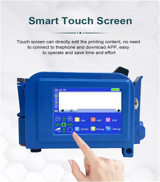 Smart touch screen The touch screen can directly edit and print the content, no need to connect the mobile phone to download the APP, the operation is convenient and time-saving and labor-saving