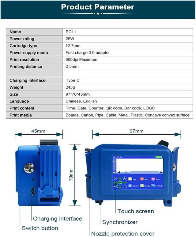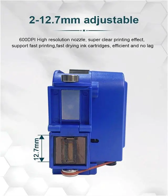 2 - 12.7 mm adjustable 600DPI high-resolution nozzles, ultra-clear printing effect, support fast printing, quick-drying ink cartridges, high efficiency and no lag