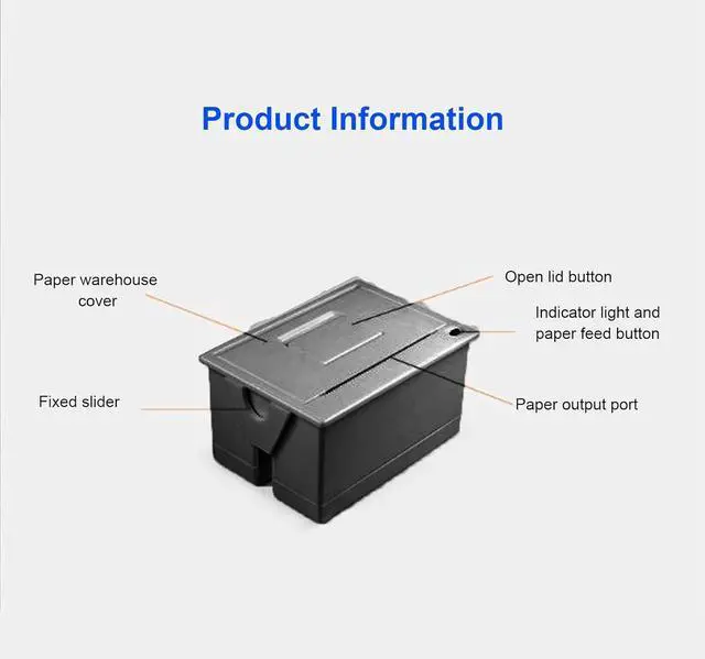 Simple Operation: Simply open the paper compartment cover on the front panel to replace the paper, and by twisting the screws on both sides of the paper compartment, the slider can be moved to fix the printer to the device.