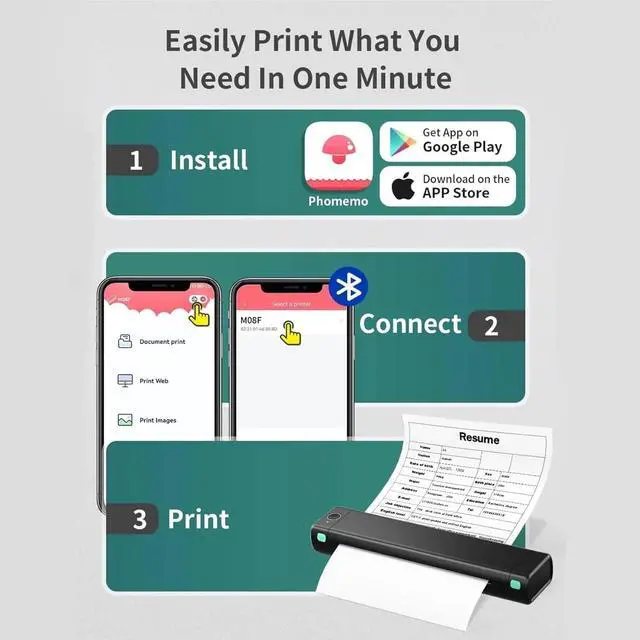 Long battery life: Equipped with a large capacity lithium battery, it can continuously print about 100 pages when fully charged, suitable for mobile office scenarios