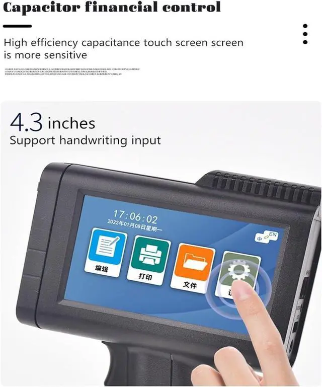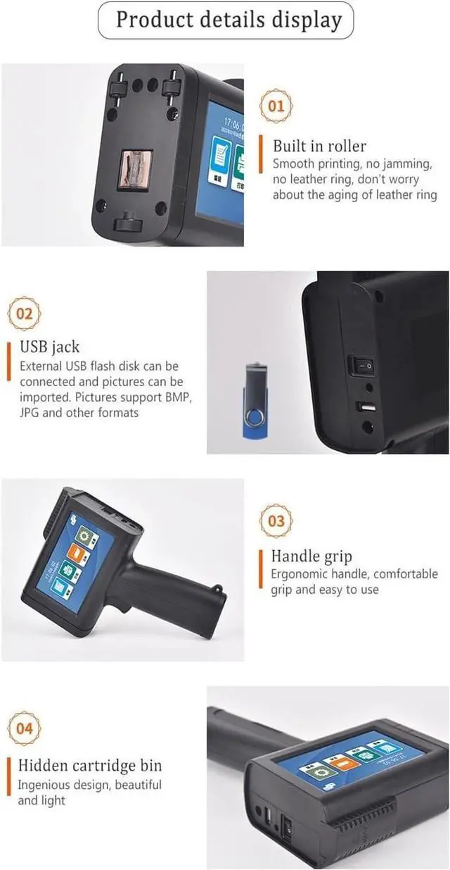 Handle The handle is ergonomic, comfortable to hold, easy to use, supports a variety of printing content, and is suitable for a variety of materials