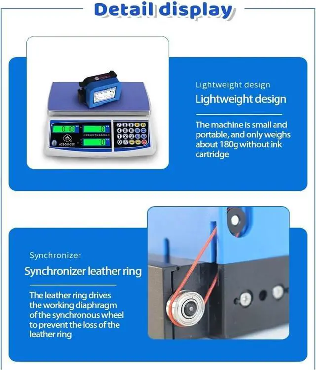 Lightweight design The machine is compact and portable, weighing only about 180 grams without ink cartridges