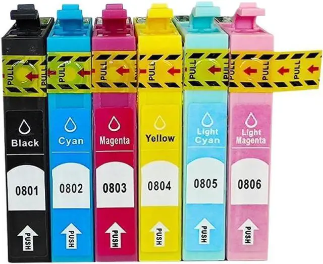 Each set includes six ink cartridges models T0801 to T0806 for complete printing needs