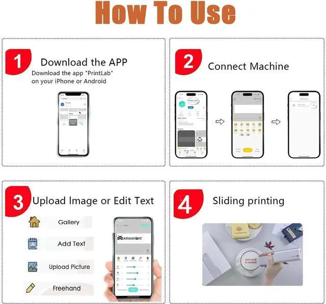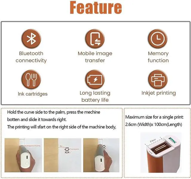 Simple Operation: Design or upload your favorite pattern on the mobile phone APp, with a pulleydesign, the picture will be printed as soon as it slides. 1.02" printing width, the larger width makes thepicture more obvious.