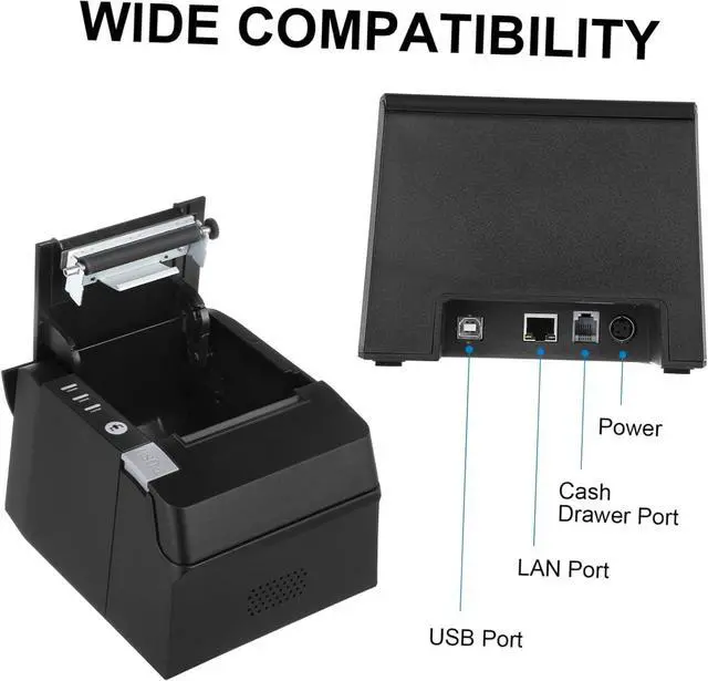 Versatile use: the receipt printer supports a wide range of receipt paper types and sizes, making it suitable for use in various industries and applications,printer receipt,thermal shipping label printer