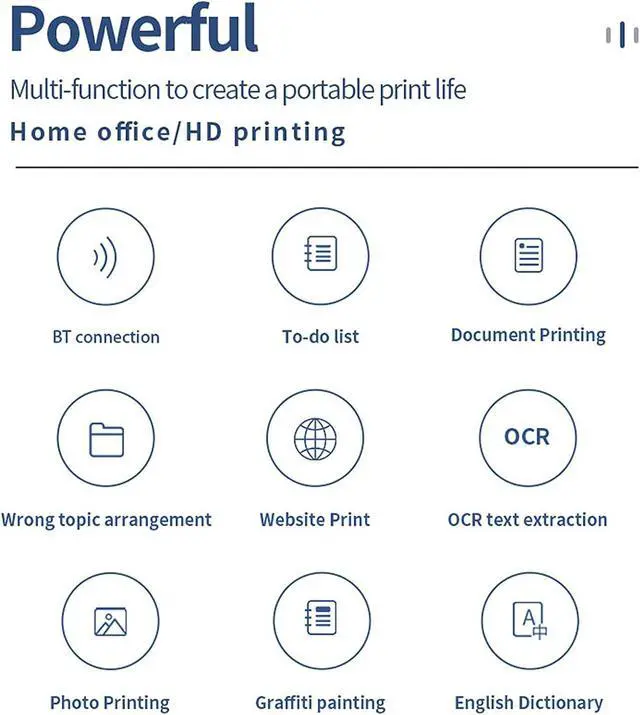 Efficient Inkless TechnologyUtilizing advanced thermal printing technology with 203dpi resolution, this compact inkless printer produces clear black-and-white documents without requiring ink cartridges or toner replacements.