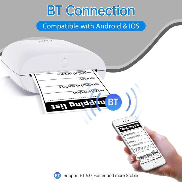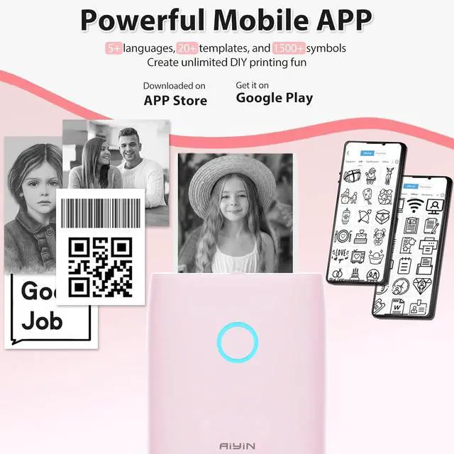 Wireless Connectivity: This printer uses BT technology to connect with the AiYin app on your Android or iOS device, making printing from your smartphone or tablet a breeze.