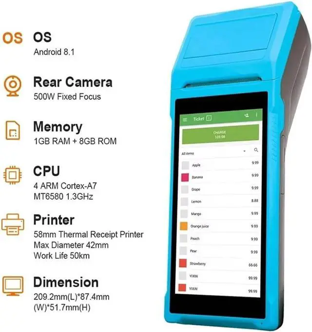 Printing: Therminal Pinter, Paper Scroll 58x35 (not included)