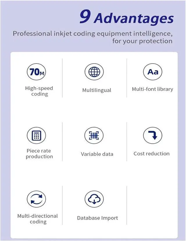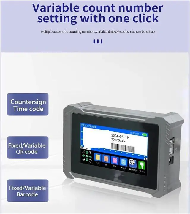 1. Our inkjet printer supports a wide range of print content including time, date, counter, QR codes, barcodes, and logos
