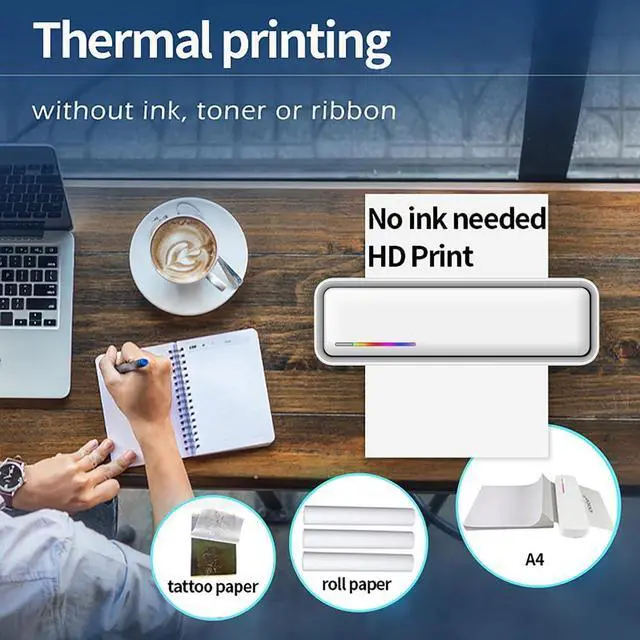 All in One Printer: Perfect to print anything you want, PDF file, test , webpage, contract, photo, picture, etc. to print loads of during business trip, an excellent assistant for study and office work. Inkless printing without ribbon.