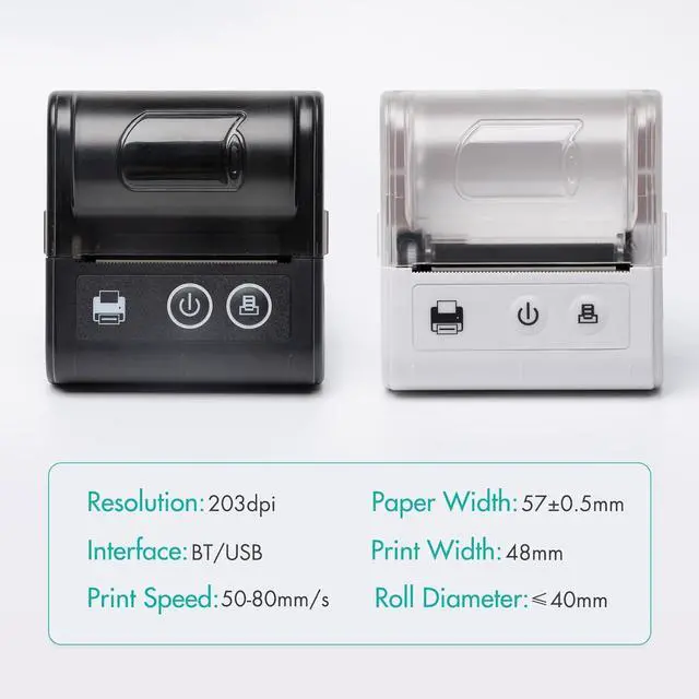203dpi resolution, support max. 40mm roll diameter, reduce change times. Easy to load . 57±0.5mm width, 48mm effective print width, 80mm/s max.print , high efficiency and clear printing.