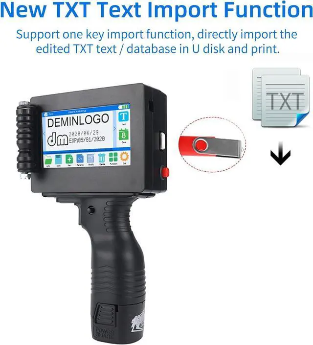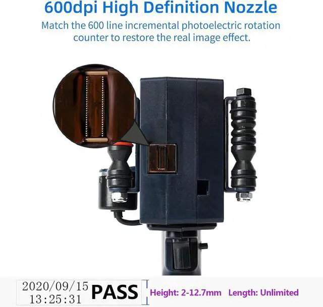 [42ml Quick-Drying Ink Cartridge]This Handheld Inkjet Printer adopts the High-Definition 42ml Quick-Drying Ink Cartridge. The ink will not block the ink outlet and printing is smooth & brightly colored so the word is very clear and has strong adhesion.600DPI high-precision printing and anti-clogging nozzles,the height can be adjusted from 2-12.7mm,and length is not limited.