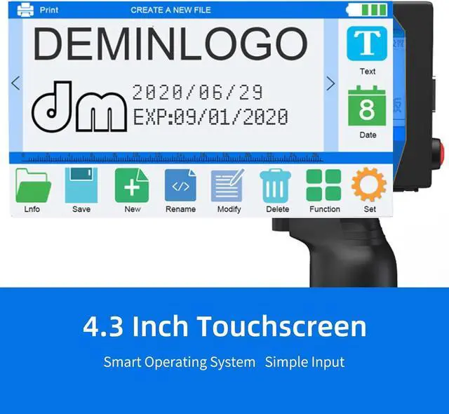 [4.3inch Touch Screen 360 ° HD Printing]Our handheld coding machine is equipped with a 4.3-inch high-definition touch screen and High LCD screen resolution,also supports built-in touch keyboard input. Handheld inkjet printers can be installed on the bracket to cooperate with the printing production line to achieve automatic production.