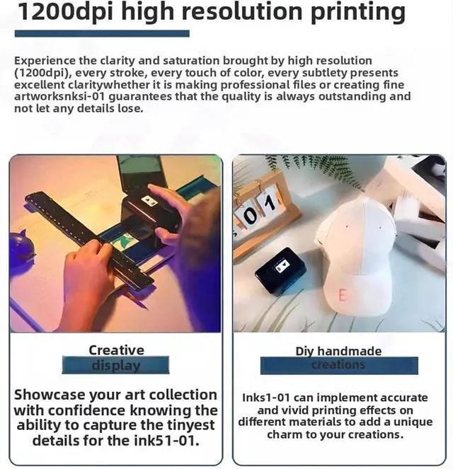 Clear Print Results: This handheld printer provides a maximum resolution of 1200dpi, ensuring high clarity and saturation to render every stroke, every shade of color, and every minute detail