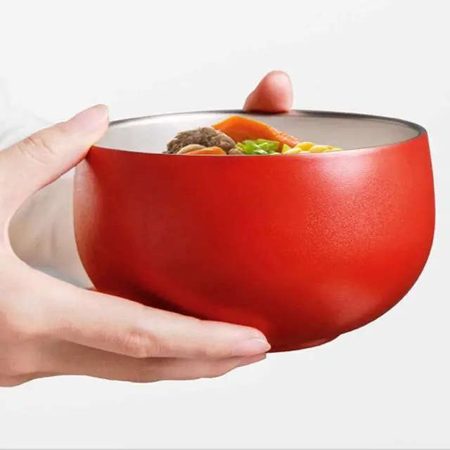 Bowls Stainless Steel Bowl,Walled Heat Insulation Rice Soup Noodles Bowl Fruit Salad Double Layer Bowls for Tableware (Color : 1) (4)