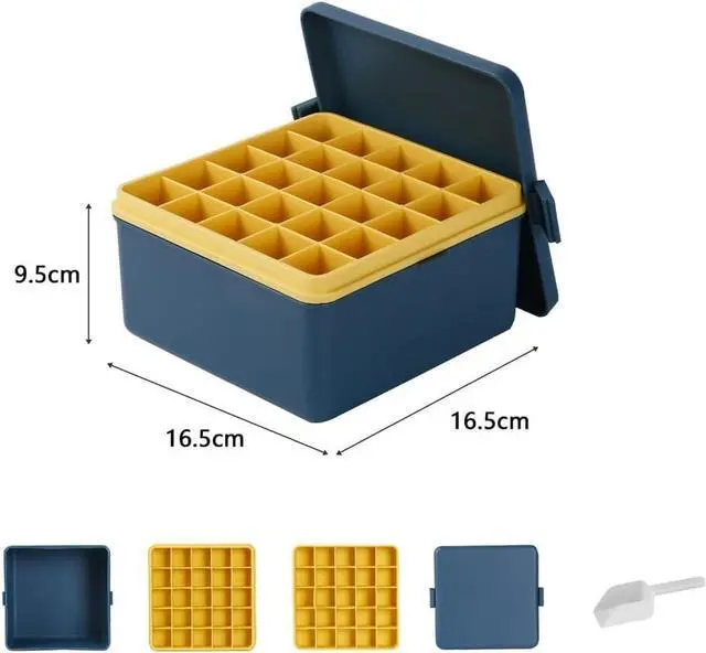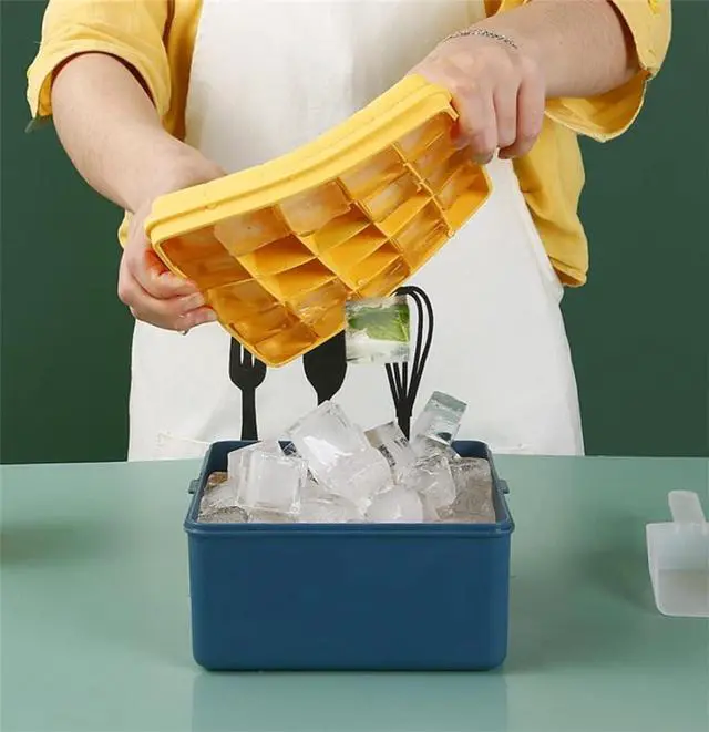 Features: Comes with ice shovel, ready to use Stackable Lid- These ice cube trays can be stacked neatly, making efficient use of the interior space of the refrigerator. Self-contained storage, integrating ice making, popsicles, and ice storage to enjoy the coolness of ; Easy to Use- You can fill the tray with water and make ice cubes in for cold drinks like whiskey, cocktails, coffee, juice, etc. It's also great for making cakes and chocolate. Compact Design- The compact size makes space saving storage perfect for any household refrigerator or dorm refrigerator. Specifications: Double ice tray, Size: 16.5*16.5*9.5cm Color: as pictured Package includes: 1 ice storage boPB9rrcluded) hint: Please allow slight deviation due to manual measurement. Due to differences between monitors, pictures may not reflect the actual colors of the item. Please refer to the actual product. Due to the cause of the computer screen, the real color may be slightly different from the picture, please understand.