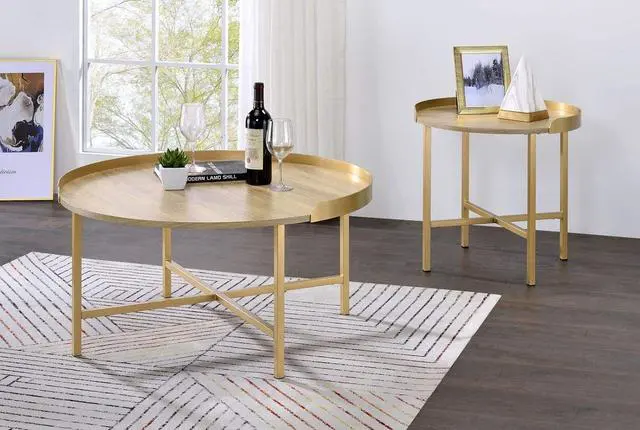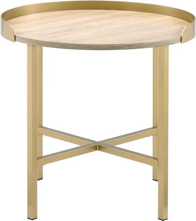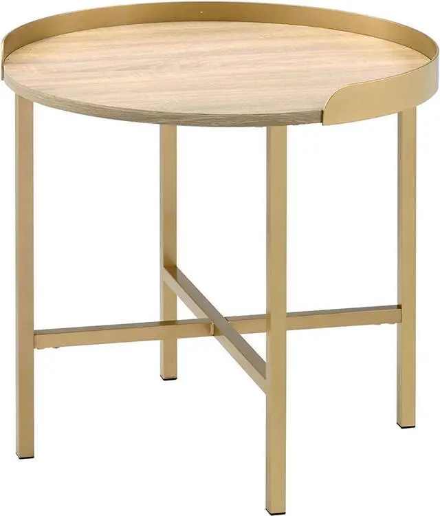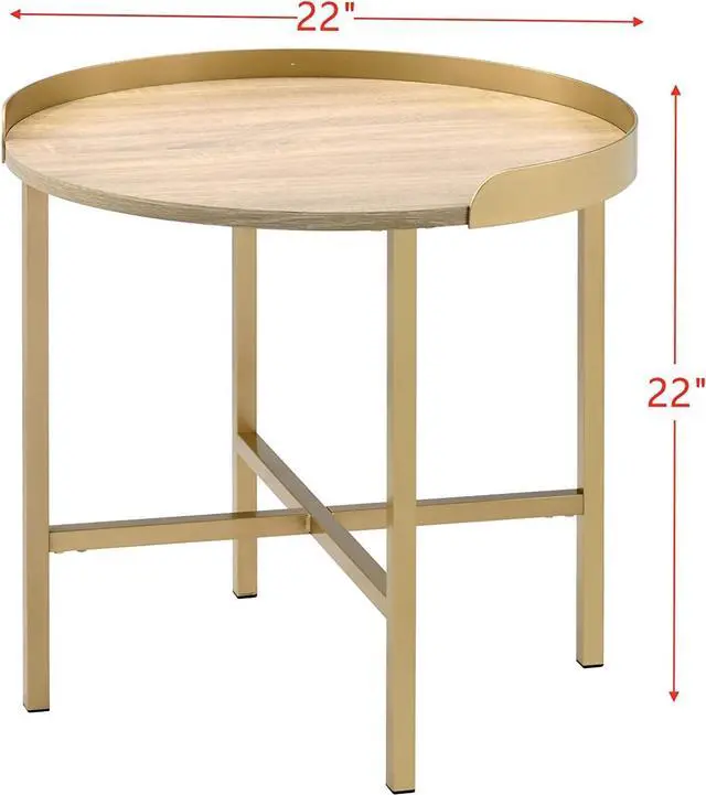 An alluring gold finish showcases it's clean-lined silhouette. With unique tray-style table top design, the end table will become an stylish and irreplaceable element of any interior.