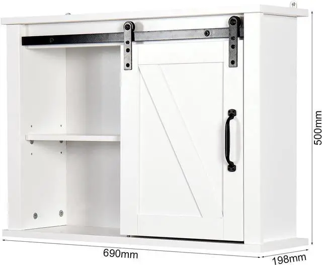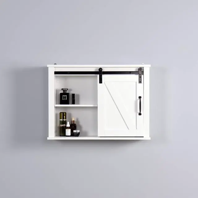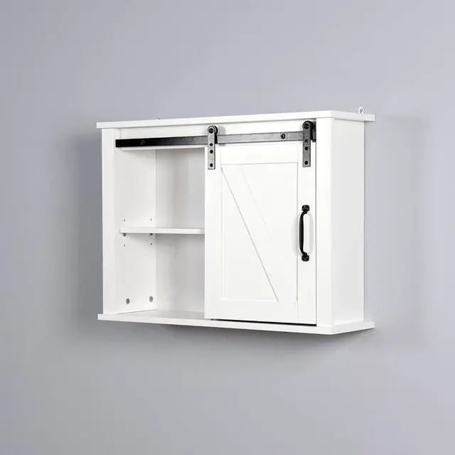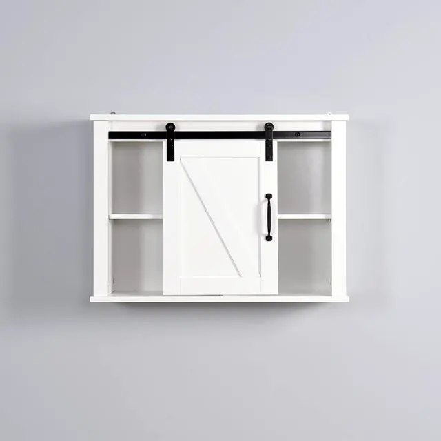 The rustic wooden white-washed finish and sliding barn door adds a classic addition to your home decor.