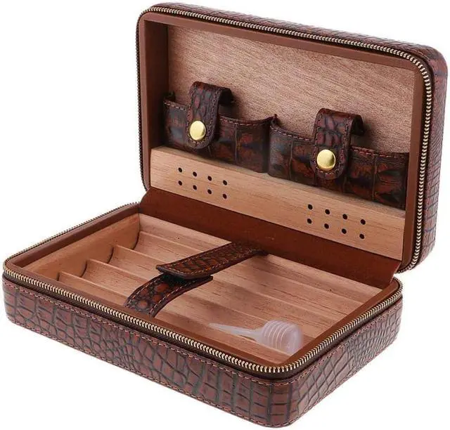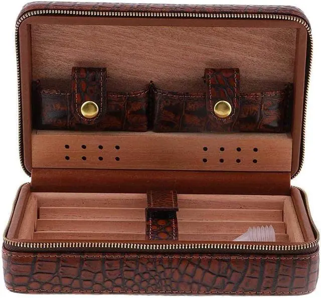 Four grids design allow to put your cigar in order Good sealing and protect humiditi and scent Cedar Cigar Humidor Cigar Box Bag 4 Supply surface grain and zipper design