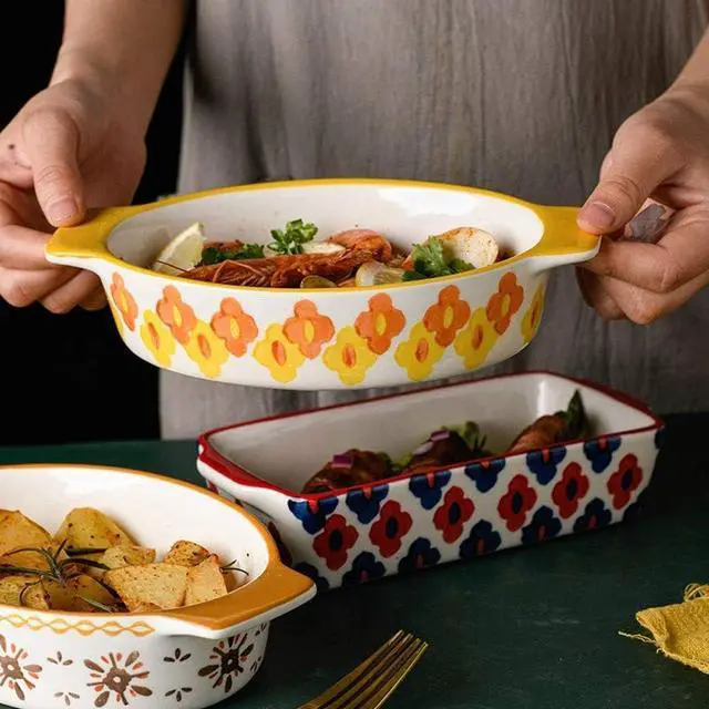 Bowls Ceramic Plate Hand-Painted,Ware Bowl Baking Dishes Pizza Tray Western Food Plate Steak Salad Dishes Dinnerware Oven Rice Bowl (Color : 2) (2)