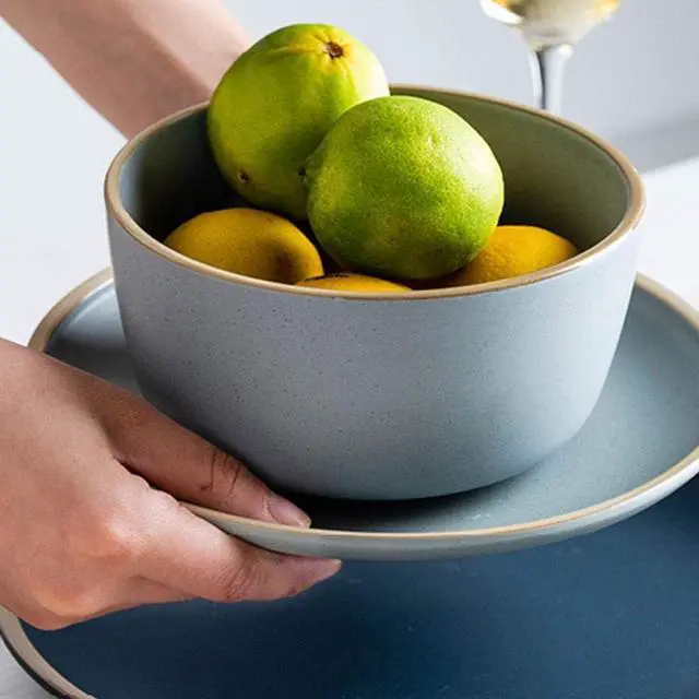 Bowls Household Ceramic Bowl Plate Dining Bowl Dessert Bowl Single Soup Bowl Rice Dish 4 Colors (Color : 2) (8)