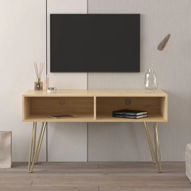 STABLE & DURABLE: Environmentally friendly and durable 15mm particle board can support the entertainment center for many s. Metal Legs looks beautiful and stable.