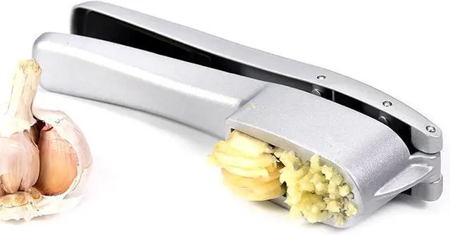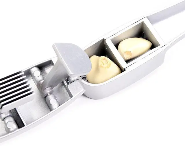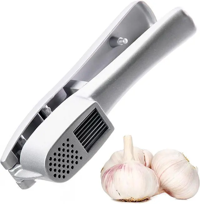 Multi-purpose garlic press, pressure resistant, can be used at the same time, easy to press out garlic and garlic slices.