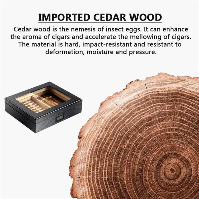 High Quality Cedar Wood - The cigar humidor is made of high-quality cedar wood, which can enhance the aroma of the cigar and accelerate the mellowing of the cigar. The material is hard, resistant to impact and deformation, moisture and pressure.