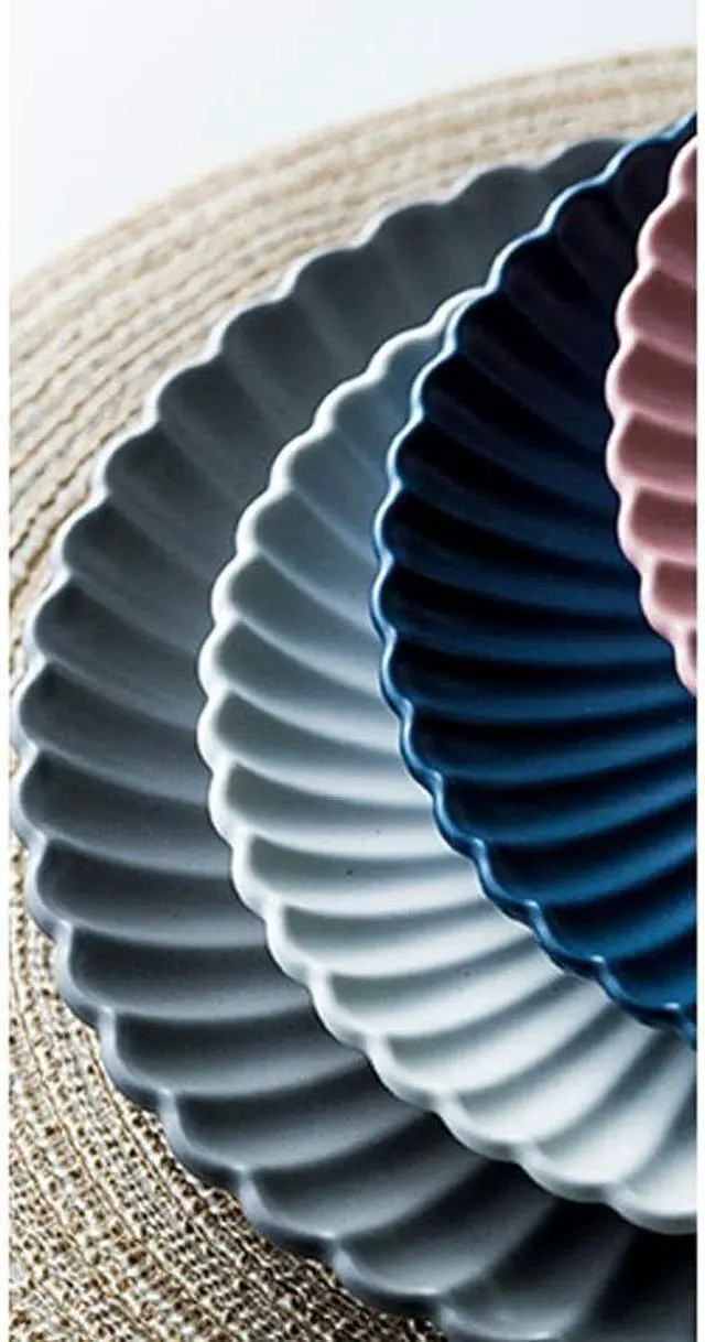 Dinner Plates Ceramic Round Chrysanthemum Dinner Plate Fruit Salad Cake Plate Steak Kitchen Tableware (Color : 1) (6)