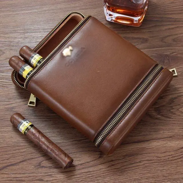 sThe cigar box is made of high-quality leather, exquisitely hand-made craftsmanship and exquisite texture. The inner sealing and protective layer naturally mellows the cigar and retains the natural aroma of the cigar.