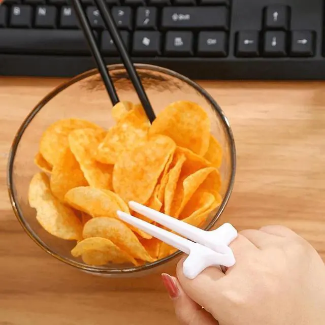 Hands-free design, easy to operate, this plastic snack chopsticks can help you eat snacks while playing games or working, without dirtying your hands and occupying your busy fingers.
