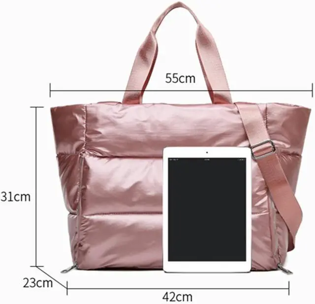 * Multifunctional pockets: main roomy compartment for ls,one independent shoes compartment, wet towel pouch, etc. Handbag or cross bag as you like,comfortable,adjustable strap.