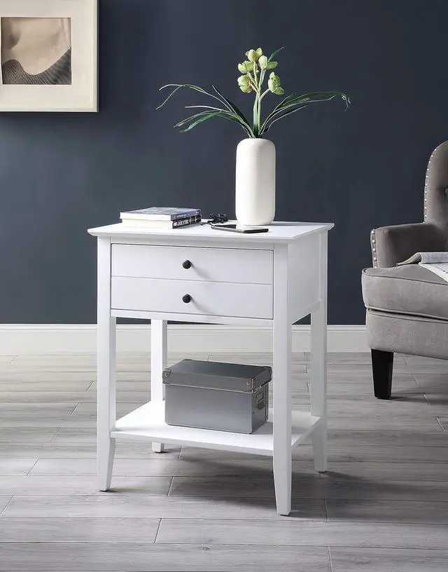 Transitional designed equipped with modern amenities, this side table will serve as a perfect place for your morning mug of coffee. Crafted from manufactured wood, this piece is available in gray or white finish.
