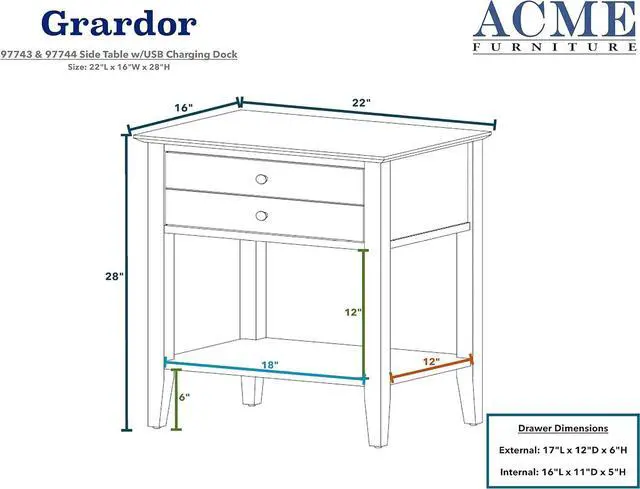 While one top drawer makes room for small-scale necessities, the lower shelf provides great option for stacking your favorite readings. With a USB power dock built-in on table top, this piece will add simple versatility to any seating group.