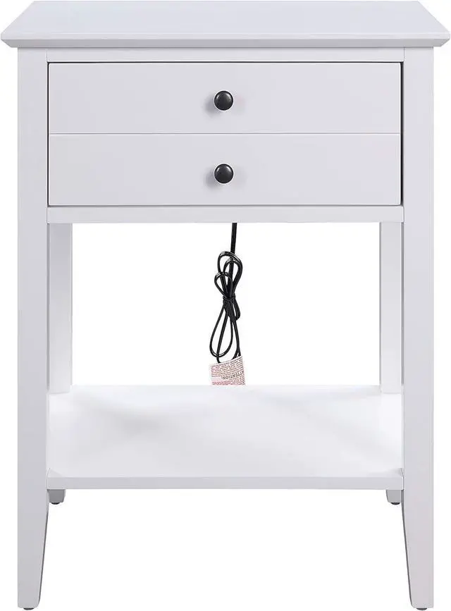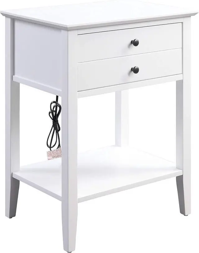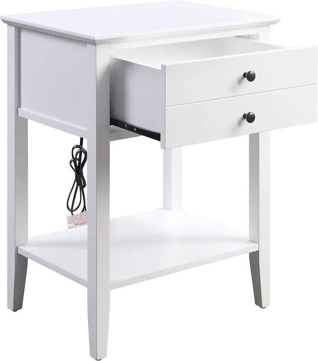 Product Details:Rectangular Side Table,Storage: 1 Drw & 1 Open Comparmtent (Wooden Shelf, Fixed),USB Power Dock on Back,Wooden Top Drawer with Straight-Tapered Leg (Open Base).